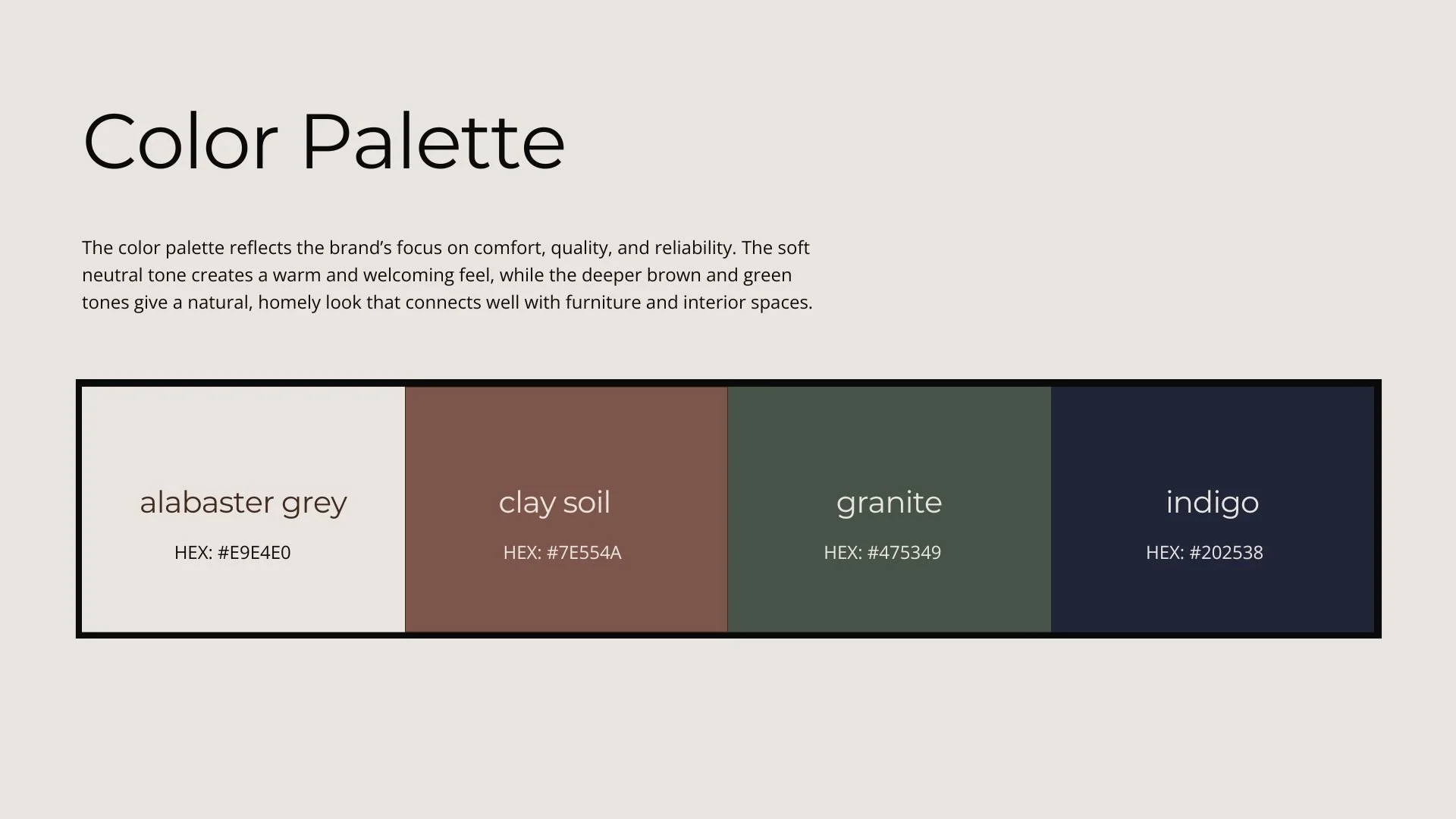 After developing the updated brand identity, I was also given the opportunity to begin working on a product catalogue for the business. This involved organising product information and images into a clear and visually appealing layout that would make it easy for customers to browse different furniture collections. I focused on keeping the design consistent with the new brand identity by using the same colours, typography, and overall style. The goal was to create a catalogue that not only showcases the products effectively but also feels professional, easy to read, and visually engaging for customers.