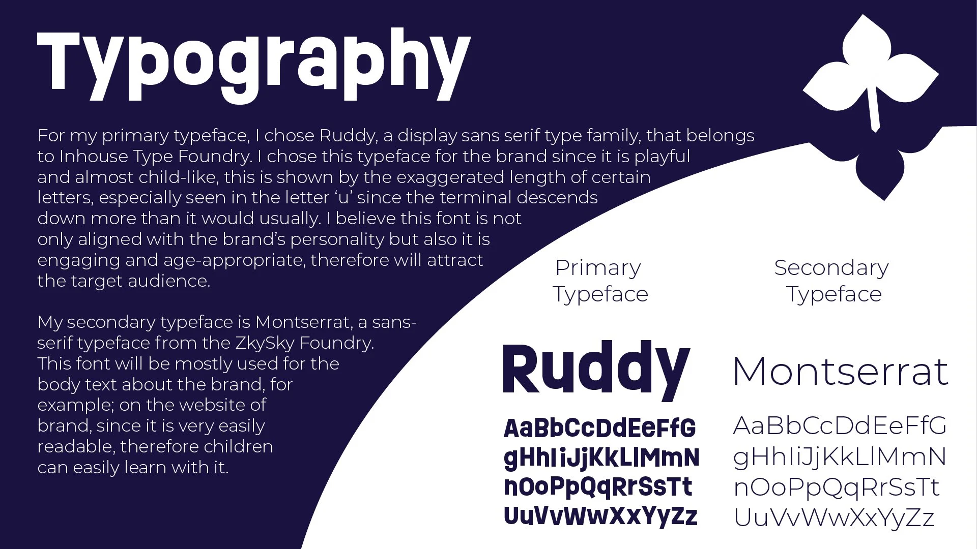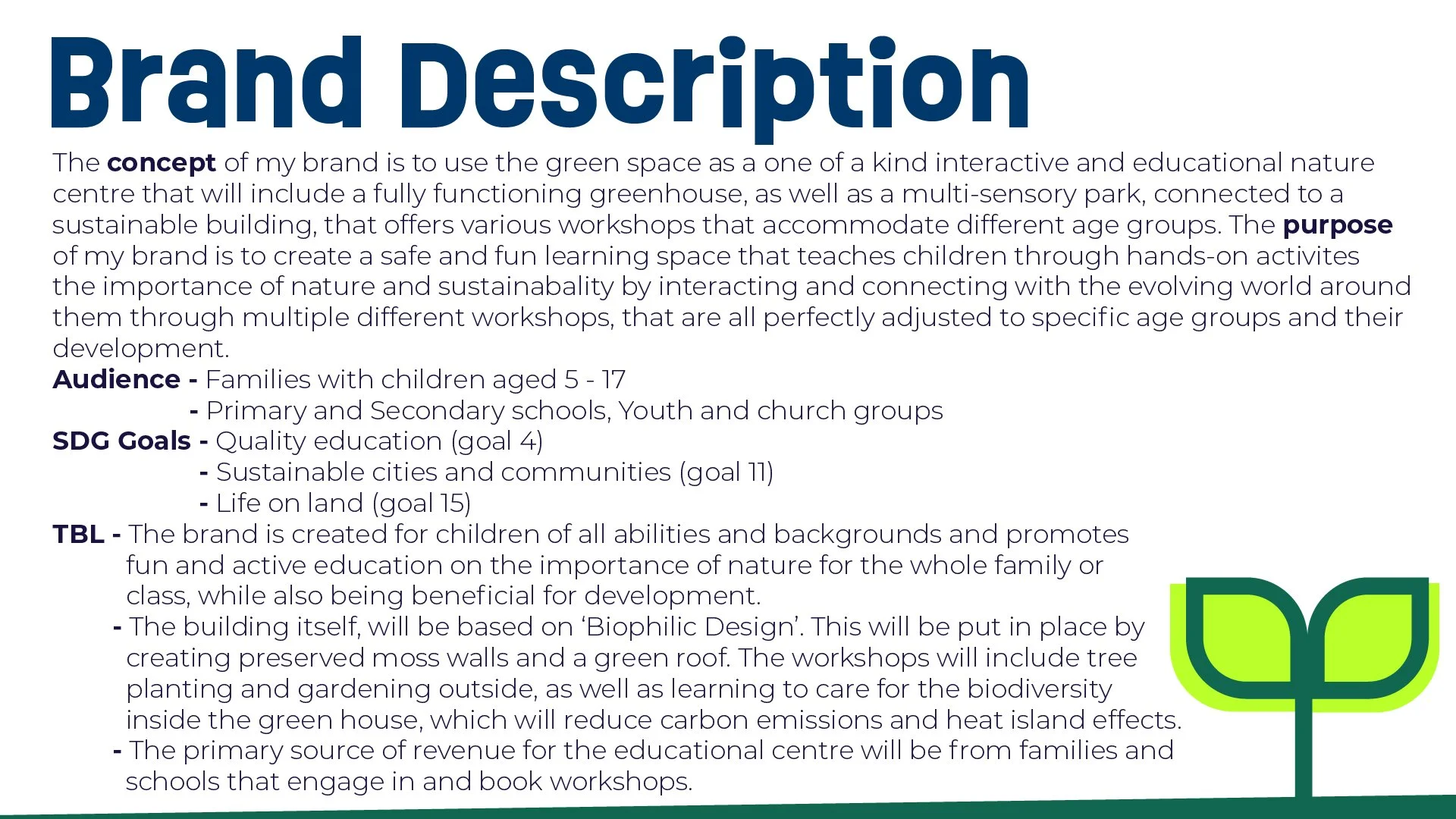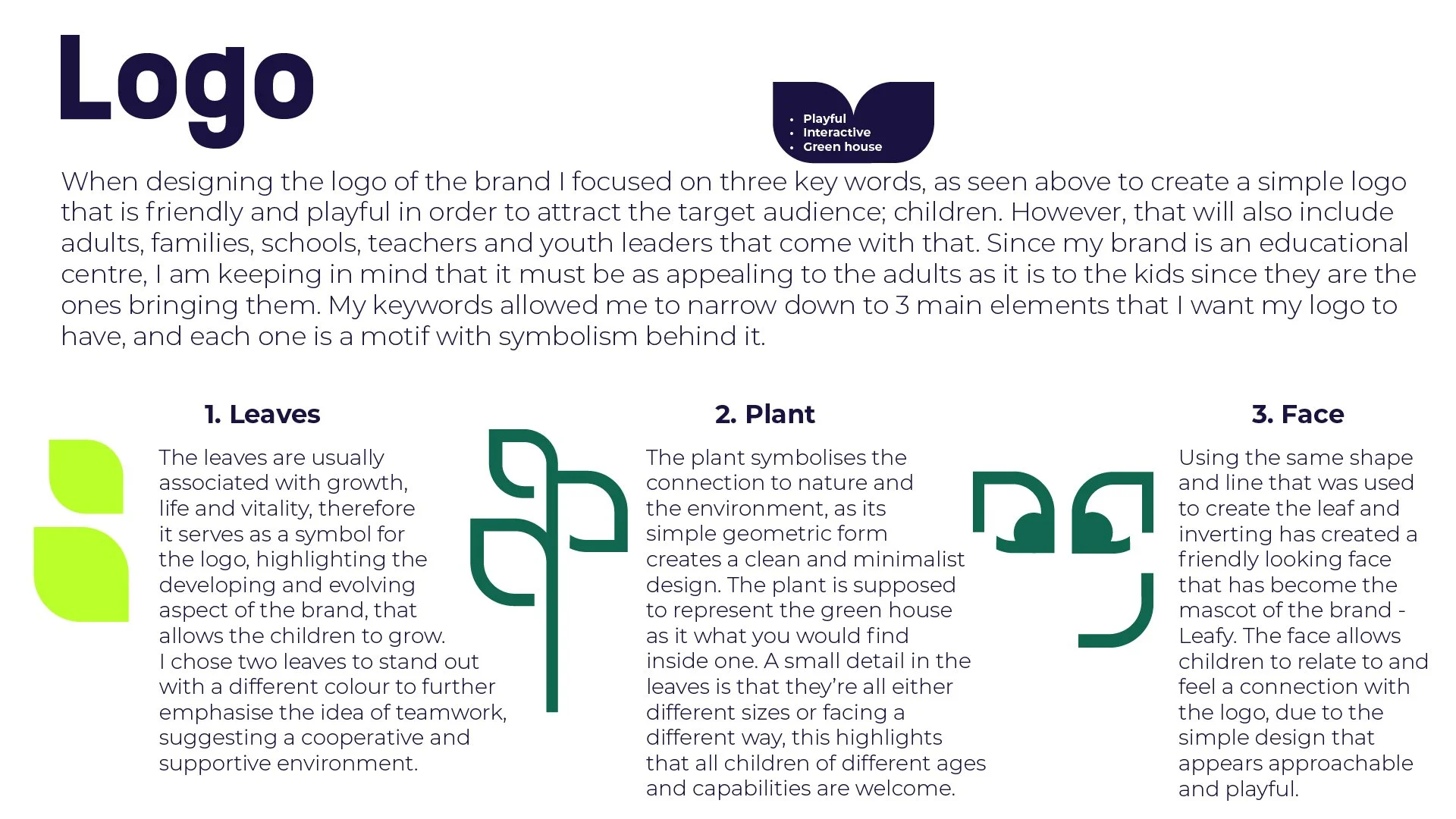 Inspired by the Brink! project, the task for this project was to create a brand identity for a City Green Space project. Leafy’s Green House is a W5 inspired interactive indoor and outdoor centre with a nature twist, mostly aimed at children and schools. It allows children of all ages and families to learn more about the world around them through hands-on activities that help with development. I used a carousel-style to describe the brand guidelines.