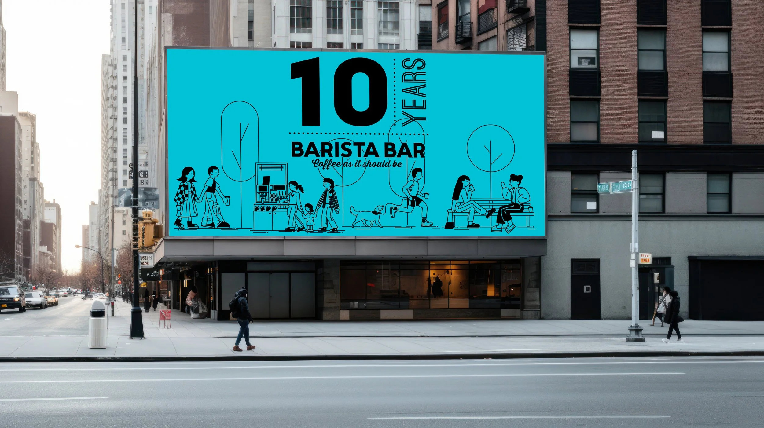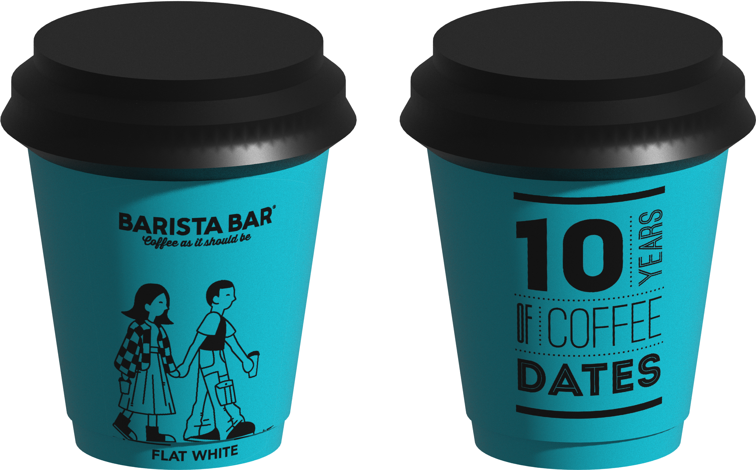 As part of my professional development module, I was given the opportunity to work with Barista Bar to create a campaign that celebrates Barista Bar's 10 Year Anniversary. The campaign included 4 cup designs, a reusable cup design and an OOH advertisement, that is targeted at a 18-24 year old audience.