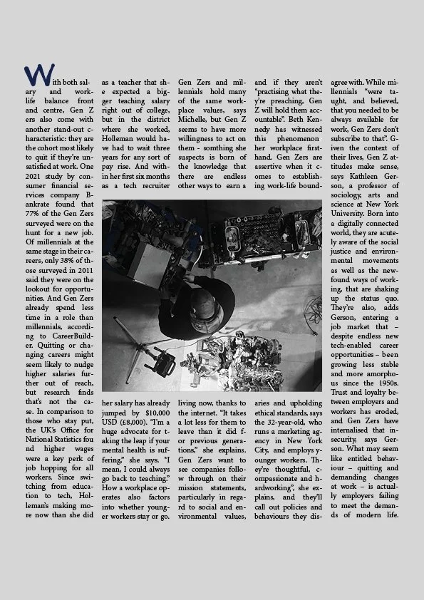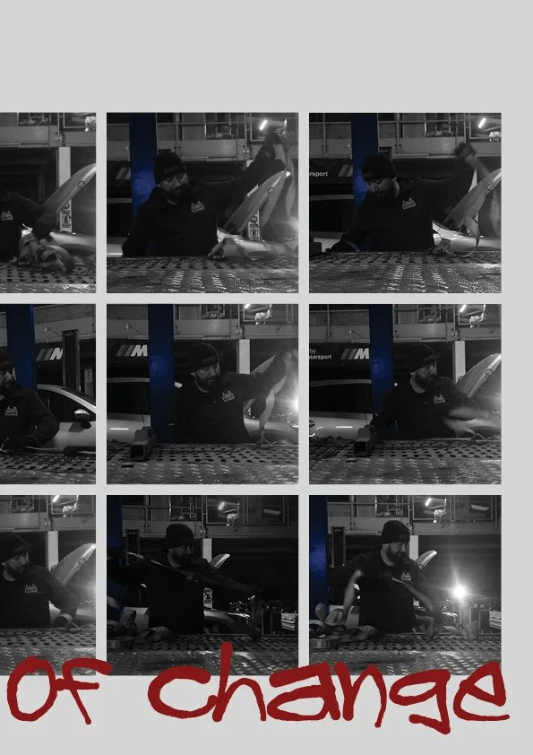 For this project, I had to look at an individual profession/job and take a range of original photography and footage, from which I created a 12 page publication. Using InDesign, I created a grid system to guide my images and typography to highlight the atmosphere of the job I chose - a mechanic.